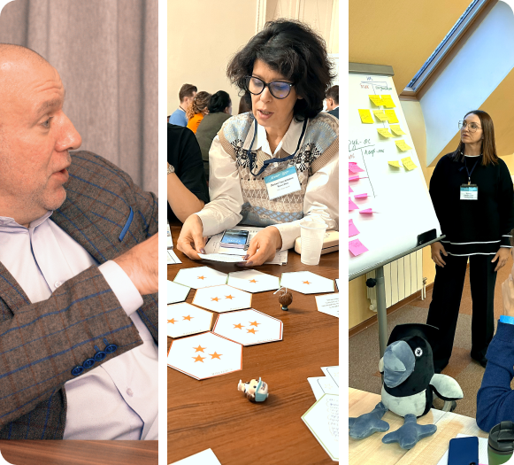 Поддерживаем высокий уровень вовлеченности участников, помогаем самостоятельно прийти к нужным выводам.